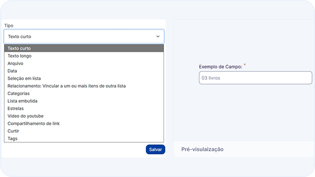 Modelos de dados rico, com vários tipos de campos disponíveis ao criá-los