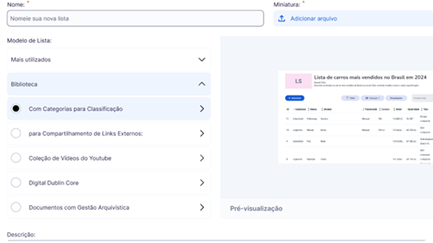 Escolha o melhor modelo para formatar sua lista, já em sua criação.